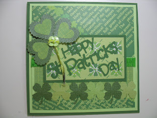 Remember that old ditty? For some strange reason it was running through my mind as I prepared to upload two new cards. My first card is for today's Dueling Darling Challenge, "St. Patrick's Day"! The Dueling Darlings are two teams, the Divas (my team) and the Dazzlers who create around a theme from a kit supplied by their team member. Each month one team member from the Divas and one from the Dazzlers get together to choose a theme for their month. From that theme they individually create a kit using stamped images/sentiments, paper and embellishments and mail to their team mates. On the 15th of the month we reveal our creations. Often there is an additional challenge. Here is my card created from the fantastic kit sent by my teammate Barb: